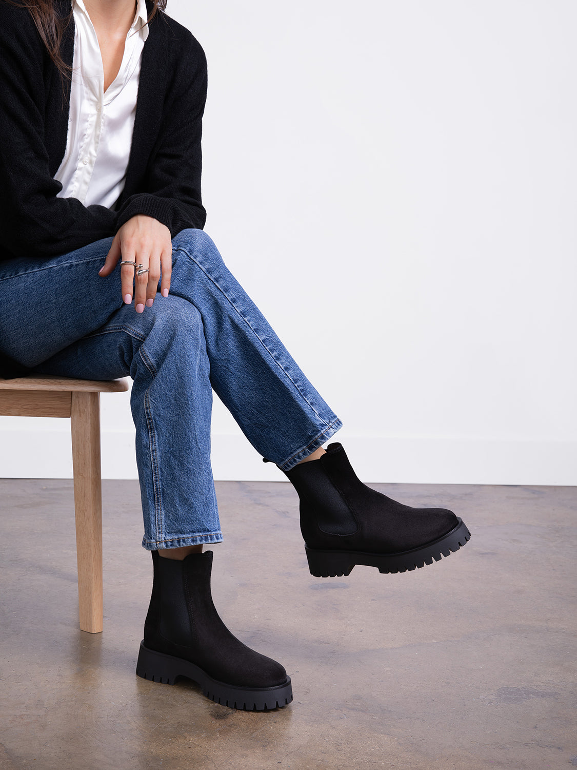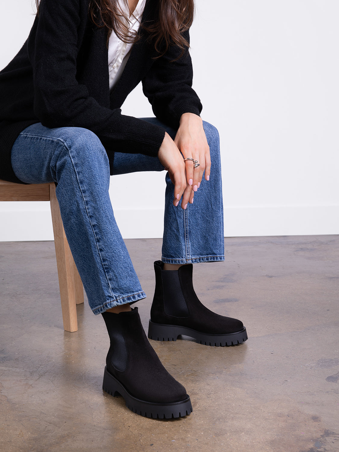 When you want to make a statement but don’t want to carry the weight of it, The Clara is your girl. With an all-new, incredibly lightweight rubber lug sole, the moto-inspired bootie combines both function (she has great traction) and fun (her platform is nearly 2” high but feels like you’re walking on a flat!).