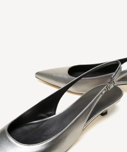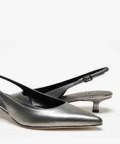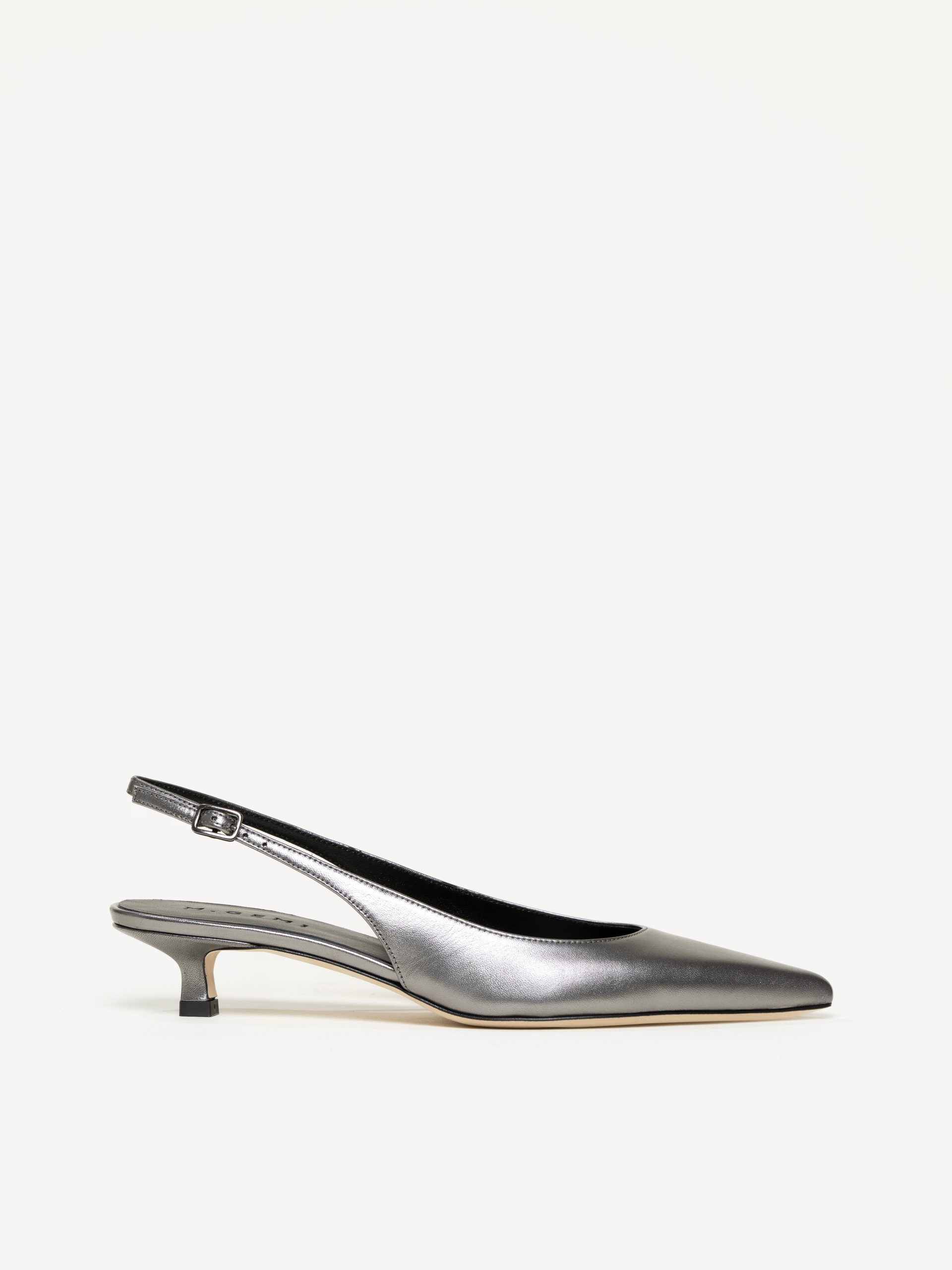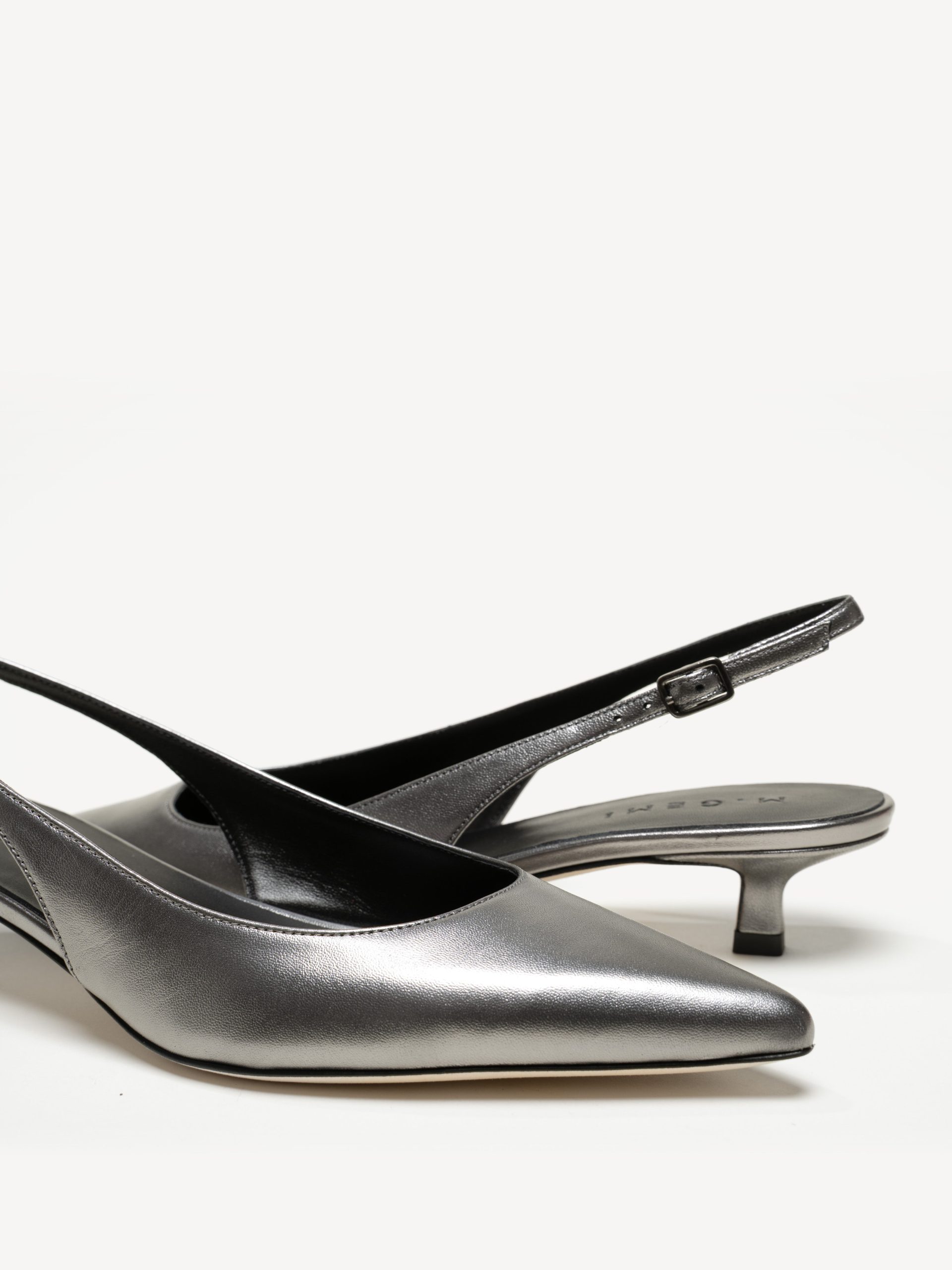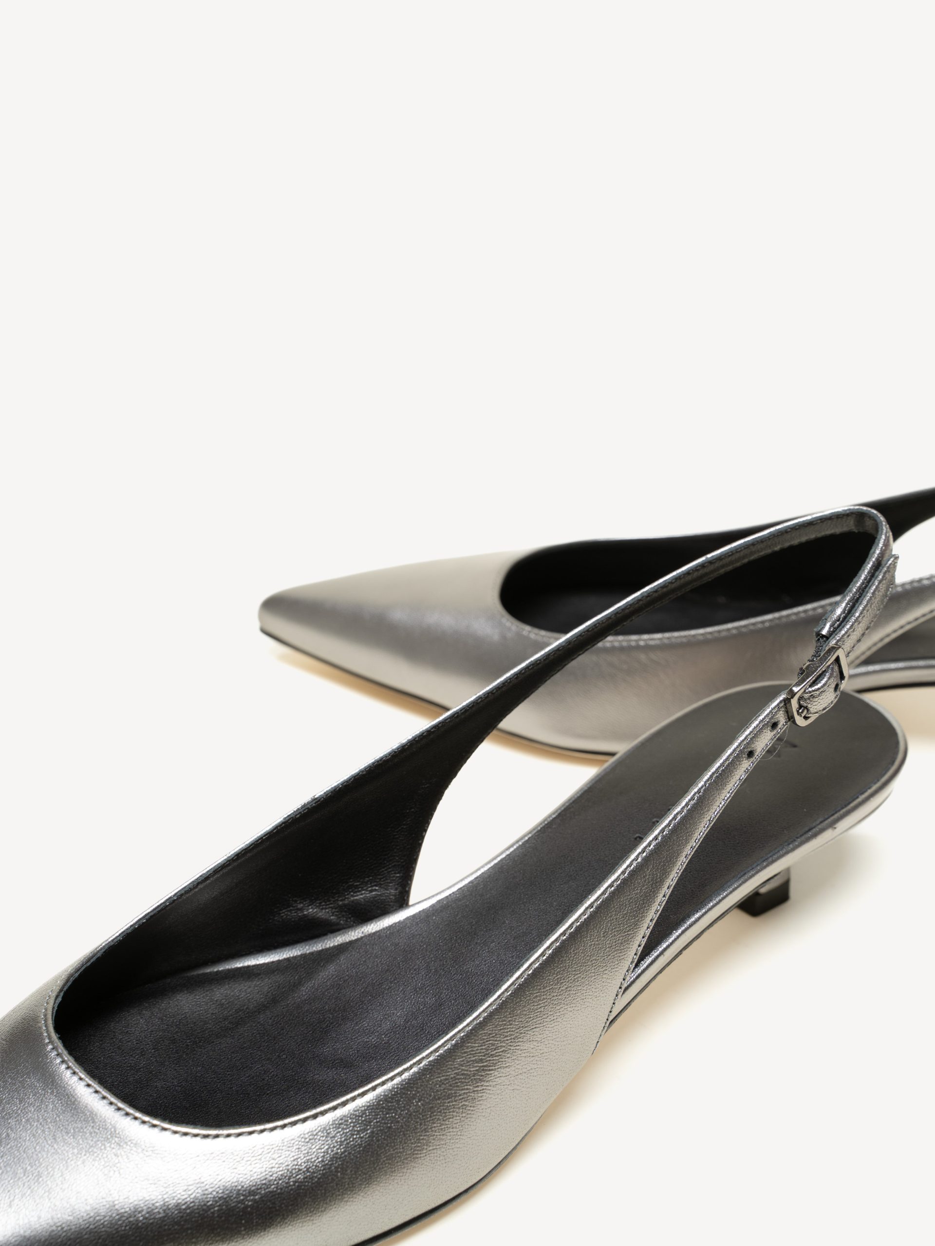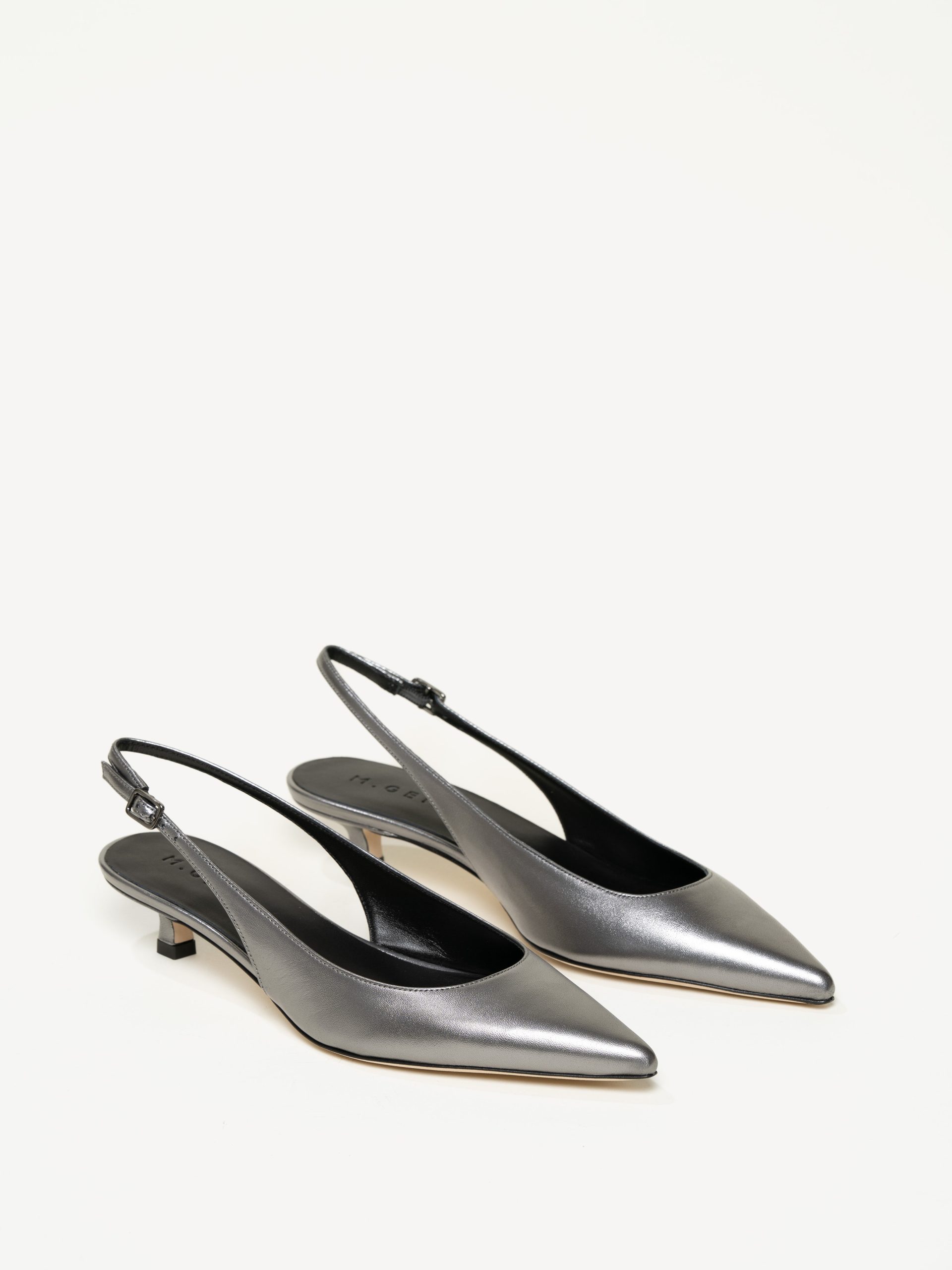 Seen here in metallic leather, The Lisinda became an It-girl favorite as soon as it launched. A classic slingback with a chic pointed toe and sculpted kitten heel, it feels both on trend and thoroughly timeless.