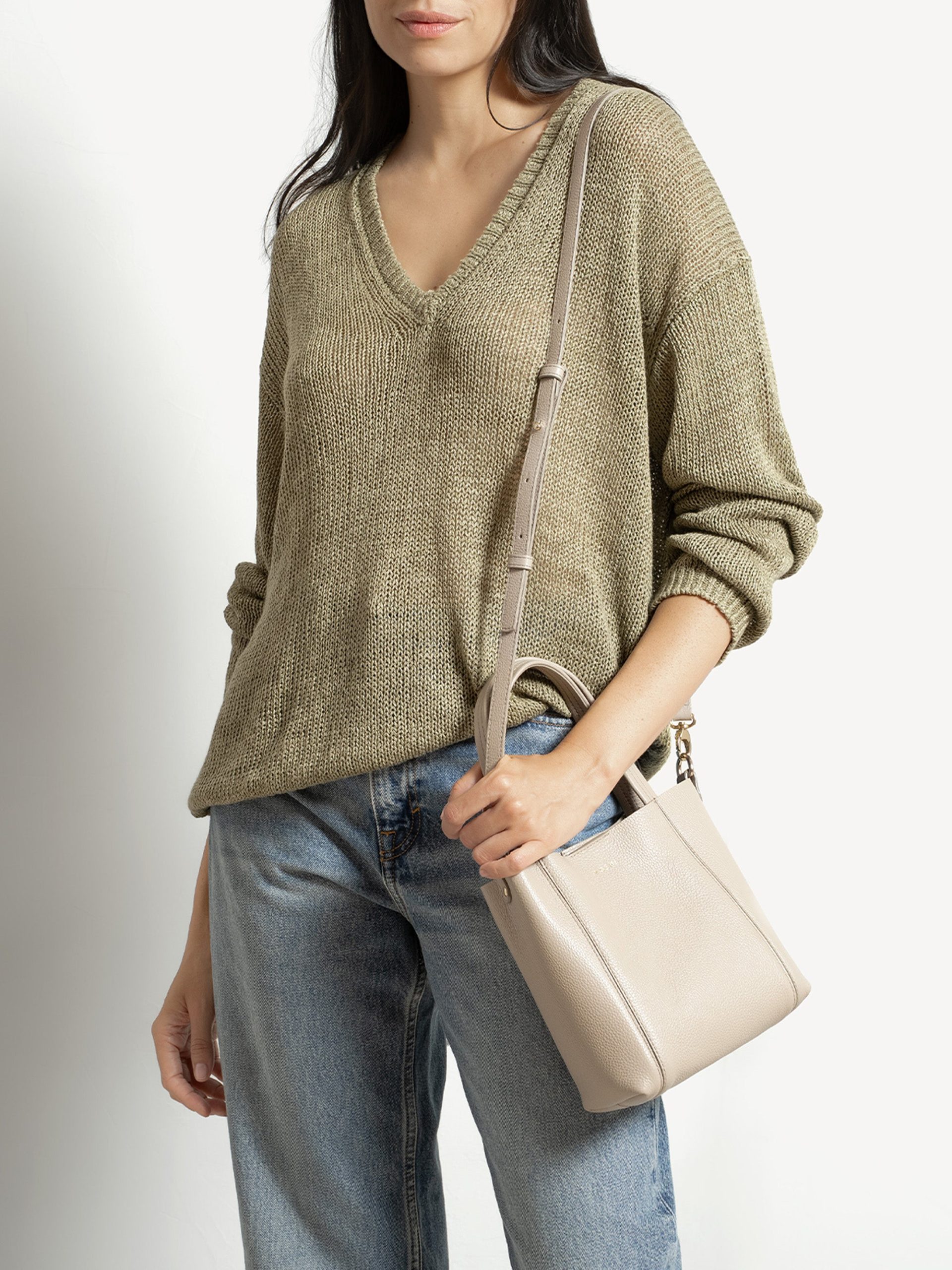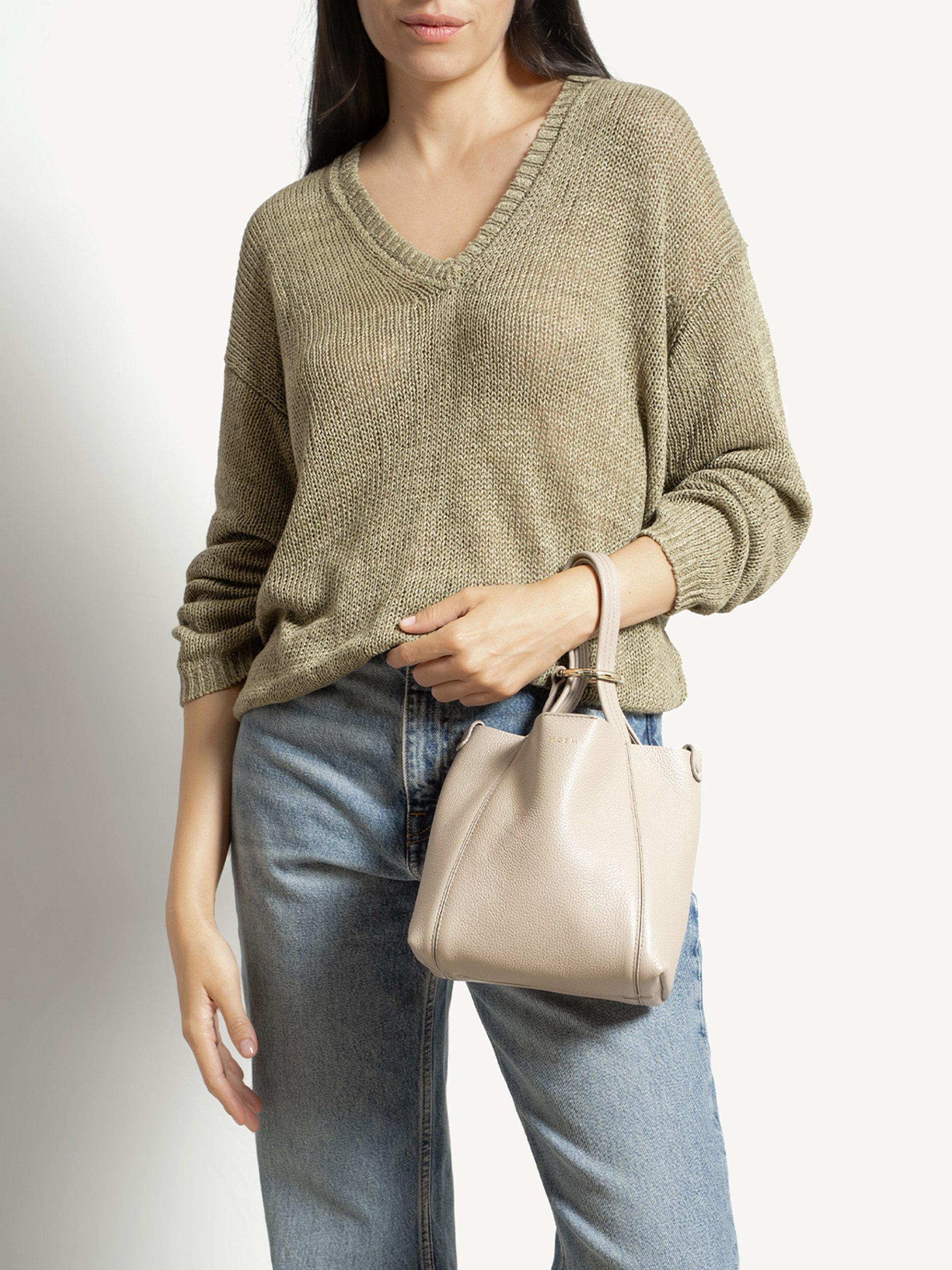Crafted from double-faced Italian tumbled leather, The Lola Small Convertible Tote is perfectly slouchy and sized just-right for your daily essentials: phone, wallet, sunglasses, lipstick, and a little extra. Wear it as a crossbody, carry it as a mini tote, or pull the top handles through the attached metal ring to cre