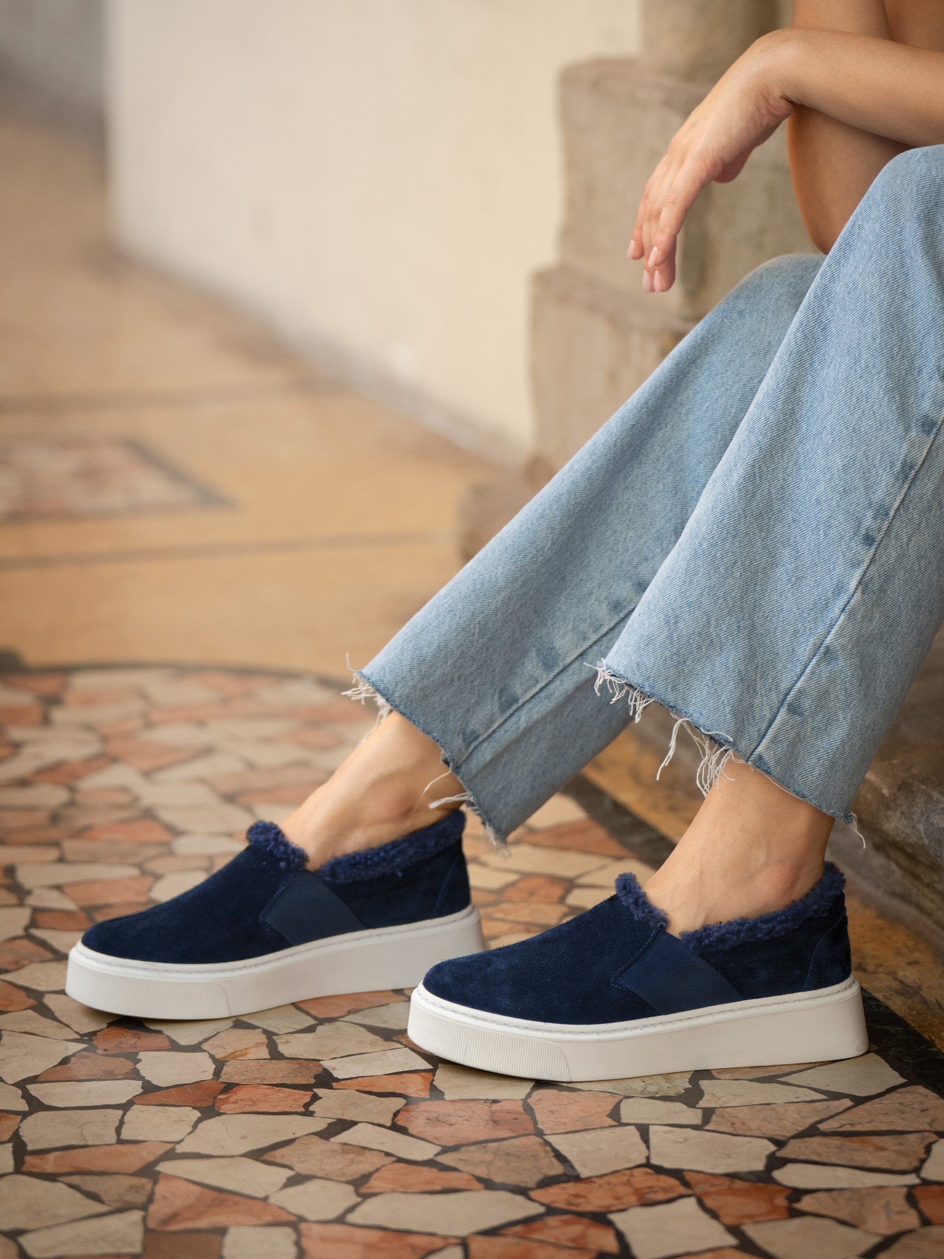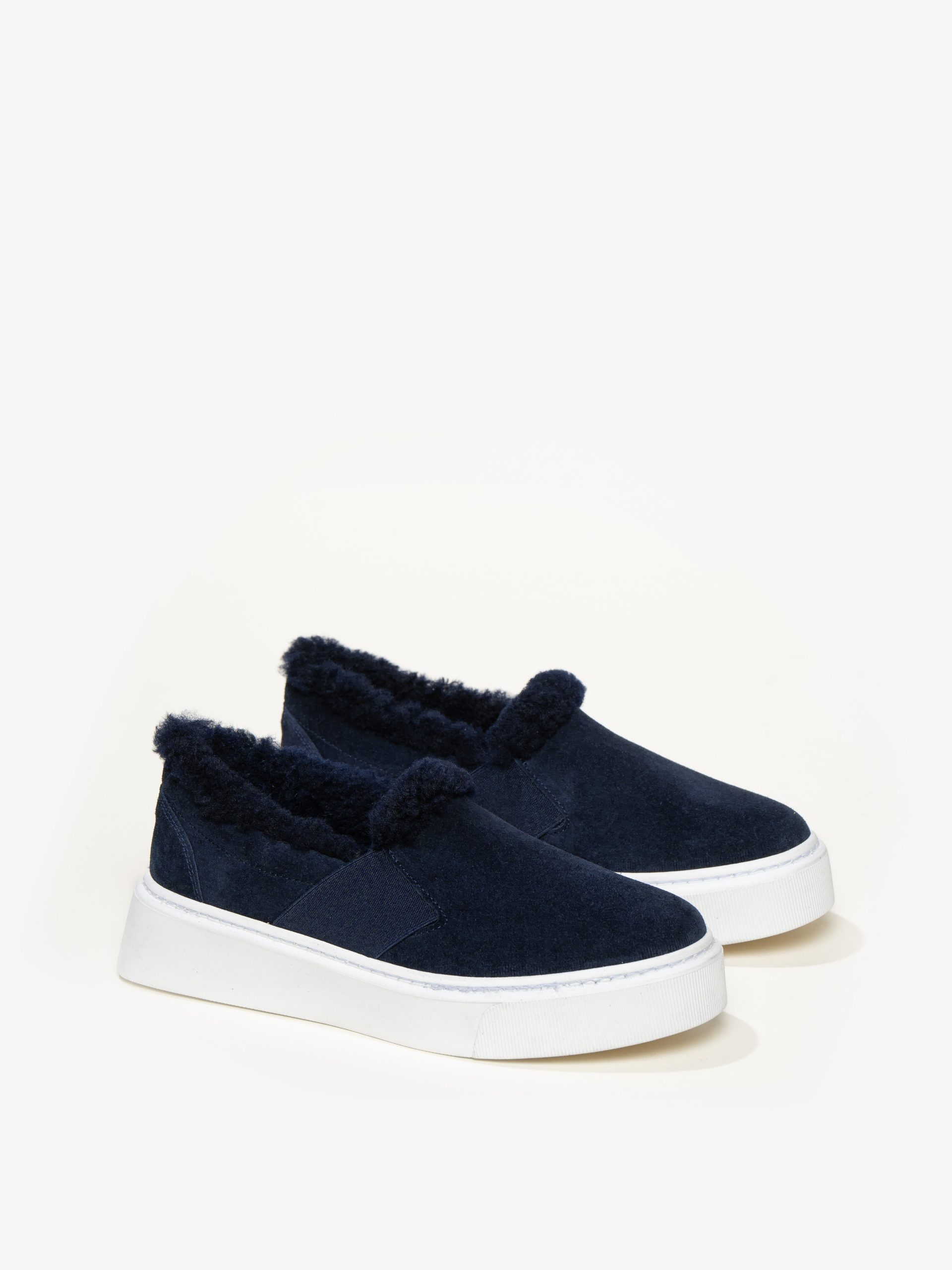 Fully lined with genuine, breathable shearling, The Luciana is our coziest sneaker (that sells out every fall). Its soft suede upper is finished with elastic panels that make it easy to slip on and off, while the platform sole gives it a boost of height.